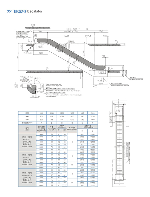 自動扶梯型號 提升高度